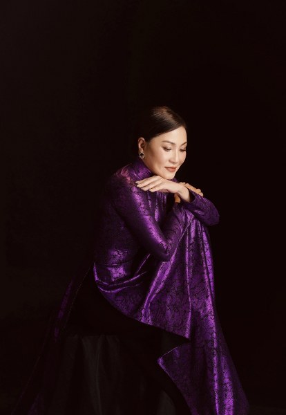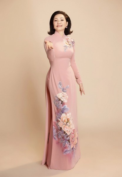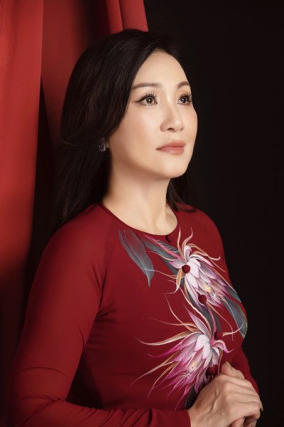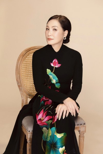 Nghệ sĩ Hồng Đào khoe vẻ đằm thắm khi làm mẫu áo dài cho nhà thiết kế Minh Châu.