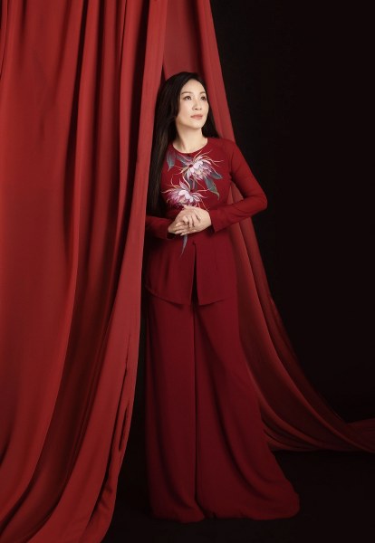 Nhà mốt mời Hồng Đào tham gia buổi chụp hình dịp đàn chị từ Mỹ về nước đóng phim. Bộ sưu tập có phom dáng truyền thống, màu sắc phù hợp phụ nữ tuổi trung niên.