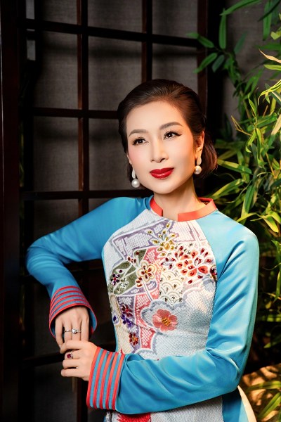 Thu Hương tạo dáng với loạt áo dài gam màu nổi như đỏ, hồng, xanh, tôn da sáng.
