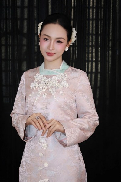 Người đẹp Trương Hồ Phương Nga thường chọn áo dài lụa, đính họa tiết hoa khi dự sự kiện, livestream bán hàng.