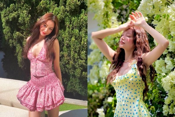 Người đẹp chọn trang phục "hack tuổi" gồm váy áo bèo nhún, xếp tầng, họa tiết hoa nhí hoặc chấm bi khi dạo chơi.