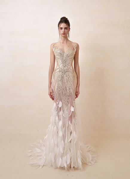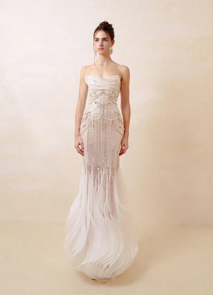 Đầm cưới xếp tầng, đính đá dáng flapper dành cho những cô dâu chuộng phong cách thập niên 1920.