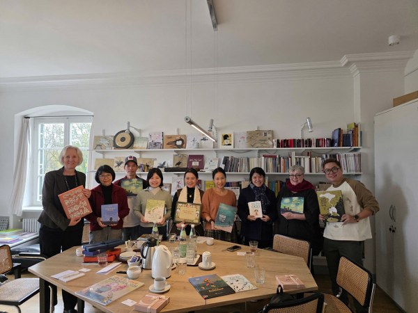 Tiếp đoàn có Tiến sĩ Christiane Raabe, Giám đốc Thư viện, và cô Lucia Obi, phụ trách khu vực sách châu Á. Trong buổi làm việc, đại diện Thư viện bày tỏ niềm vui khi được đón đoàn NXB Kim Đồng – đơn vị có tới 4 tựa sách được lựa chọn vào danh mục The White Ravens qua các năm: Cái Tết của mèo con (2019), Lĩnh Nam chích quái (2021), Những miền lưu dấu – Cảnh Việt trong văn chương (2023), và Ba tớ là Runner (2024).