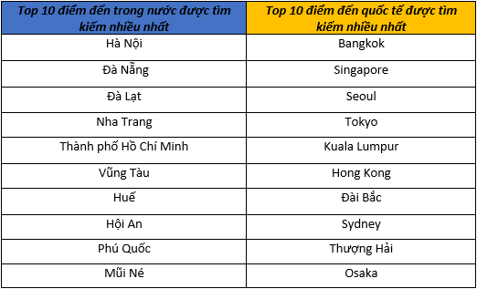 Top 10 điểm đến nội địa và quốc tế trên Booking.com được du khách Việt tìm kiếm nhiều nhất từ ngày 29/8 đến 3/9: