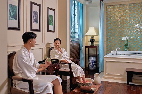 Tại Azerai La Residence Huế, gói Valentine bao gồm hai đêm nghỉ dưỡng, bữa sáng hàng ngày cho hai người, một chai vang hồng, một hộp chocolate và một bó hoa tươi. Ngoài ra, cặp đôi còn được trải nghiệm 60 phút chăm sóc spa và bữa tối lãng mạn bên dòng Hương thơ mộng.