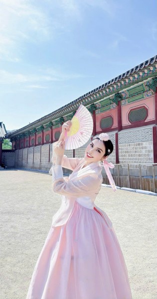 Cô cũng chia sẻ kinh nghiệm mặc Hanbok khi du lịch Hàn Quốc, Hanbok thường được thuê và mặc tại các điểm du lịch nổi tiếng như Gyeongbokgung, Changdeokgung, làng cổ Bukchon Hanok, hay phố cổ Insadong. Đây là những nơi có bối cảnh cổ kính, phù hợp để hòa mình vào không gian lịch sử.
