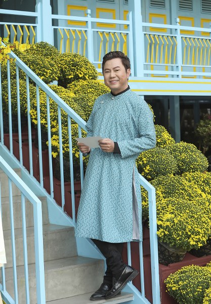 Ca sĩ Quốc Đại ấn tượng với nhà sàn Tây Nam Bộ tại lễ hội xuân.