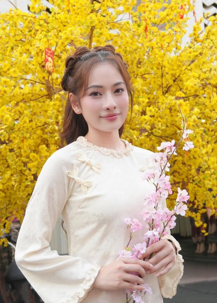 Hoa hậu Ngọc Châu, diễn viên Nhã Phương, ca sĩ Phương Thanh diện áo dài, xuống phố du xuân.
