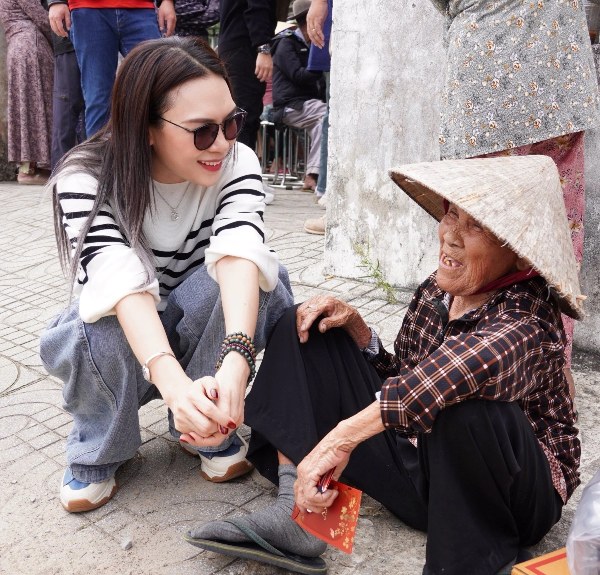 Ngày 11/2, Mỹ Tâm cùng người thân đến Quảng Nam (Đà Nẵng mới) tặng quà Tết. Ca sĩ duy trì việc thiện nguyện hơn chục năm qua mỗi dịp xuân về.