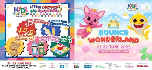 Lần đầu tiên được tổ chức, "K!DZ POP CON ASIA" kết hợp hài hòa giữa giải trí, giáo dục và sáng tạo để mang đến các hoạt động hấp dẫn dành riêng cho trẻ em và gia đình. Các em nhỏ có thể thỏa sức vui chơi tại “Pinkfong Baby Shark Bounce Wonderland” (tạm dịch: Xứ sở Bật Nhảy Kỳ Thú của Cá Mập Con Pinkfong), tham gia các buổi học làm bánh thú vị cùng BELLS Baking Club và Beard Papa’s, hoặc hòa mình vào những chuyến phiếu lưu hấp dẫn trong “The Little Lost Dreamers” (tạm dịch: Những Kẻ Mộng Mơ Nhỏ Bé Lạc Lối). Tại đây, mỗi hoạt động đều được chuẩn bị và chăm chút để khơi dậy sự tò mò và khả năng sáng tạo của trẻ.