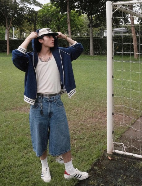 Sơn Tùng chia sẻ ảnh đến Thảo Cầm Viên chơi. Anh chọn bộ cánh hip-hop gồm áo hoodie, quần đùi kẻ và quần bermuda denim.