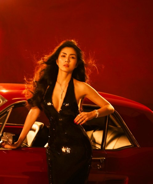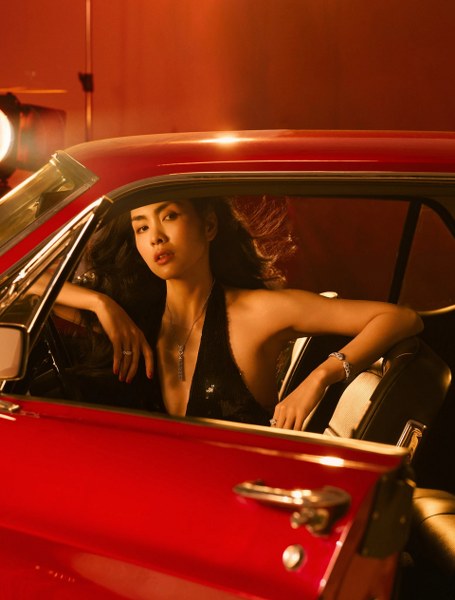 Khác với phong cách kín đáo, nhẹ nhàng thường thấy, Tăng Thanh Hà diện đầm ôm sát, xẻ ngực sâu, tạo dáng bên ô tô. Trang phục giúp cô khoe vẻ gợi cảm nhưng vẫn toát lên sự tinh tế, sang trọng. Nữ diễn viên trang điểm sắc sảo, tóc xoăn nhẹ, tạo dáng đầy cuốn hút.