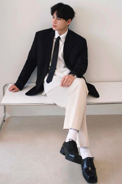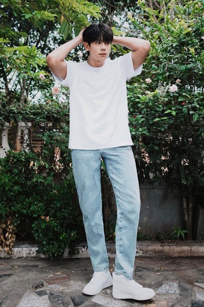 Thái Vũ chuộng các gam màu trung tính và các món đồ như quần kaki, áo len, áo blazer, giày Oxford.