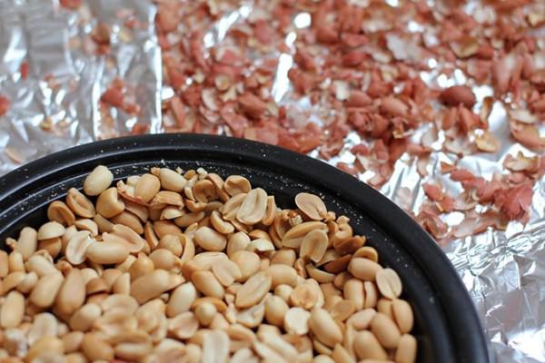 – Đậu phộng hay lạc cho vào chảo khô rang nhỏ lửa, đảo thật đều tay.