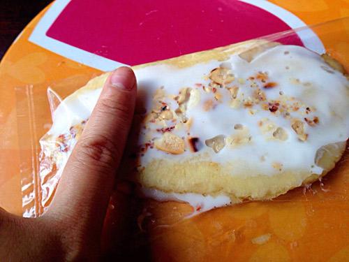 – Rót 1 thìa nước cốt dừa hỗn hợp đã nấu lên chuối rồi rắc đậu phộng lên trên, dùng tay ép nhẹ cho nước cốt dàn đều mặt chuối.