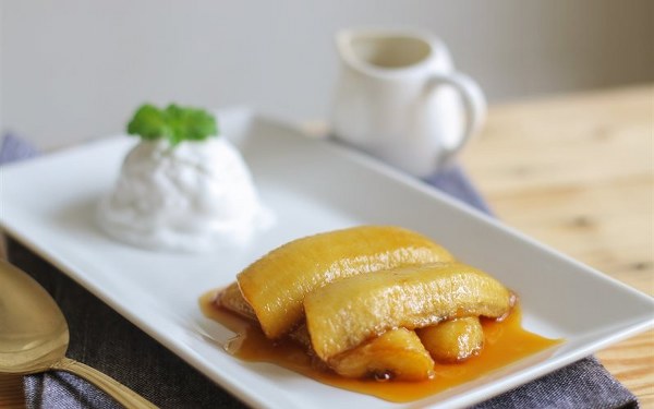 Chuối đốt rượu là món tráng miệng rất được yêu thích ở các nước phương Tây – thường được dùng kèm với một viên kem, món ăn mang hương vị của rượu cùng vị ngọt thanh của chuối, cách làm món ăn này cũng vô cùng thích mắt.