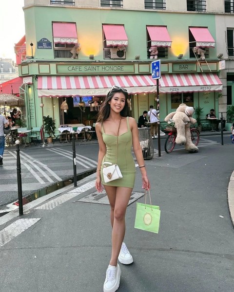 Thời trang đường phố thể hiện vẻ năng động với váy bodycon, sneakers và túi Dolce & Gabbana.