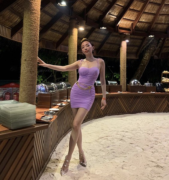 Ca sĩ Tóc Tiên thích sử dụng trang phục gam màu bắt mắt, nổi bật nhất là sắc xanh neon, hồng và đỏ cam được mix-match theo nhiều phong cách.