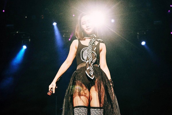 Ca sĩ Hương Tràm thể hiện phong cách sexy và cá tính khi phối chân váy xuyên thấu với bodysuit tiệp màu.