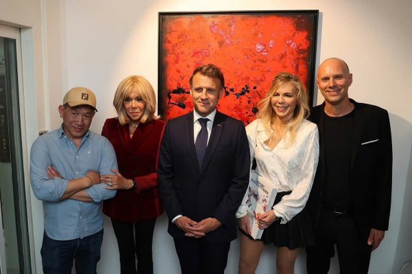 Tổng thống Pháp Emmanuel Macron và Phu nhân ghé thăm Gallery A2Z Paris tháng 4 vừa qua. Phòng tranh này là nơi trưng bày 20 tranh đạt giải cao nhất cuộc thi (Ảnh: BTC)