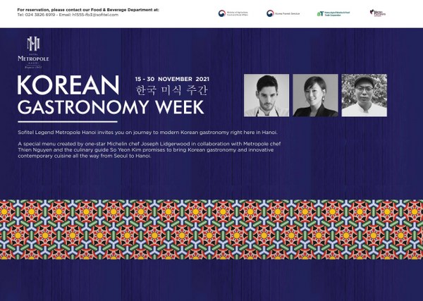 Từ ngày 15 đến 30/11/2021, khách sạn Sofitel Legend Metropole Hà Nội sẽ tổ chức Tuần lễ Ẩm thực Hàn Quốc, hứa hẹn mang đến cho thực khách một hành trình trải nghiệm ẩm thực độc đáo với hương vị Hàn Quốc hiện đại.