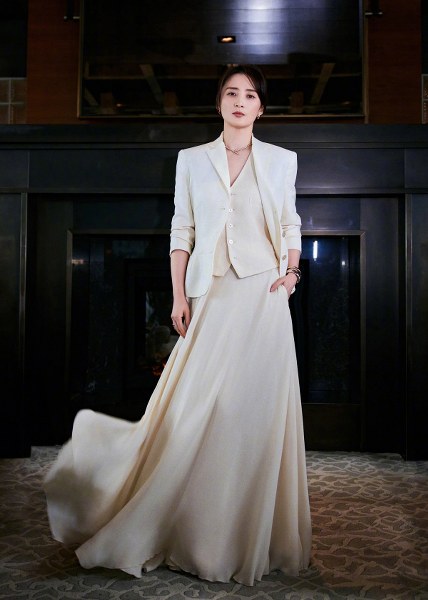 Diễn viên trong thiết kế cảm hứng váy cổ điển. Những năm gần đây, Tưởng Cần Cần đóng các phim điện ảnh, truyền hình Độc nhất vô nhị, Thảo mộc nhân gian, Đương gia chủ mẫu.