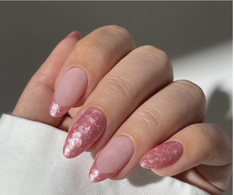 Với những cô nàng yêu thích phong cách nhẹ nhàng và thanh lịch, kiểu sơn móng vân đá là lựa chọn lý tưởng. Những vân đá được vẽ tinh tế tạo hiệu ứng giống đá cẩm thạch, kết hợp với màu hồng rosy nhẹ nhàng, mang lại vẻ đẹp dịu dàng, rất phù hợp cho không khí ngọt ngào của Valentine.
