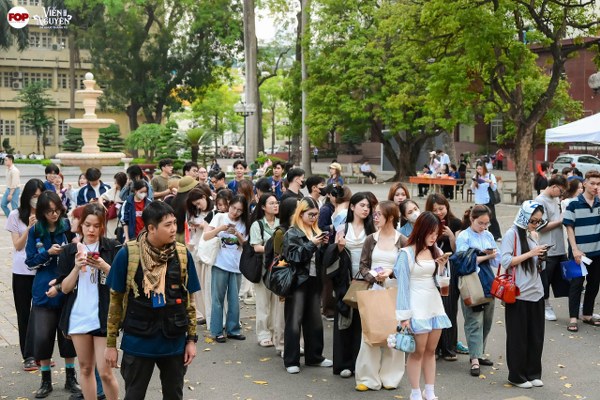 Khán giả xếp hàng mong chờ sự xuất hiện của các nghệ sĩ khách mời tại đêm nhạc hội