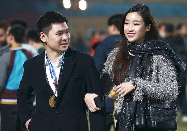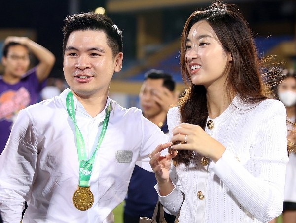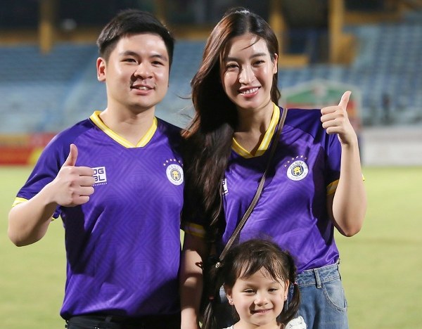 Có chồng là Chủ tịch CLB Hà Nội, Mỹ Linh nhiều lần cùng anh ra sân vận động để cổ vũ và trao giải.