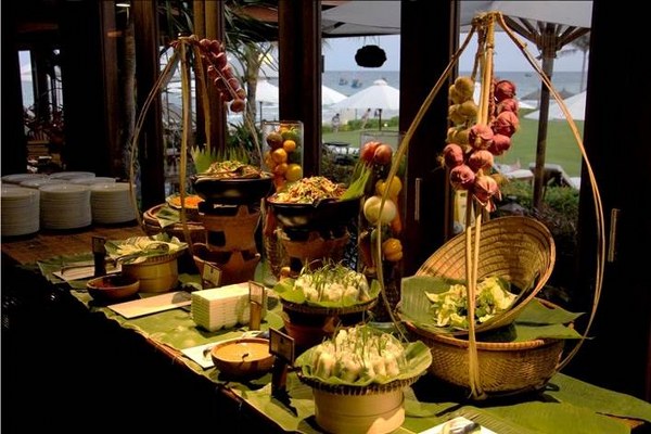 Chương trình buffet ẩm thực đường phố sẽ diễn ra từ 18h30 đến 21h30. Sáu khu vực bếp của nhà hàng Làng Việt sẽ phục vụ nhiều món ăn phong phú như bò lá lốt, tôm nướng, mì quảng và nộm bò khô.