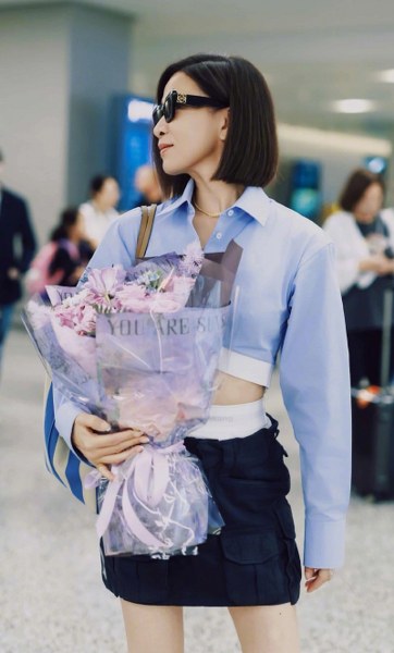 Ở đời thường và những lần ra sân bay, Xa Thi Mạn chọn phong cách trẻ trung, nhấn vào các thiết kế hở eo, vai.