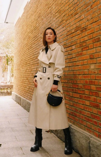 Diễn viên đăng ảnh dạo phố với trang phục, phụ kiện Burberry, hôm 5/12/2025. Trang On nhận xét Thi Mạn giỏi kiếm tiền, có công ty riêng, đắt show quảng cáo, sự kiện và mỗi năm đều có phim gây tiếng vang. Minh tinh dành phần lớn thu nhập để mua bất động sản. Theo St Headline, cô có ít nhất 5 ngôi nhà, tổng trị giá 180 triệu HKD (23 triệu USD).