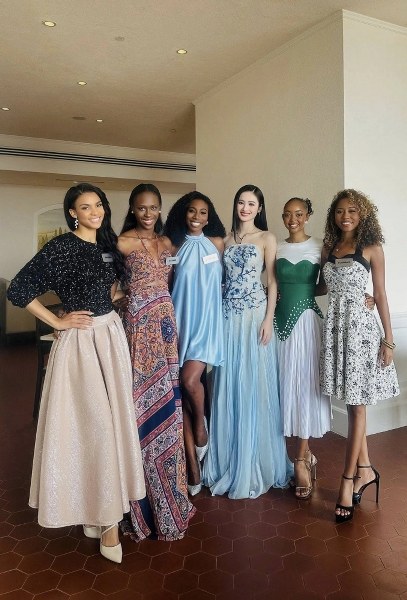Ý Nhi (thứ ba từ phải sang) cùng các thí sinh Miss World trong một hoạt động, ngày 18/5