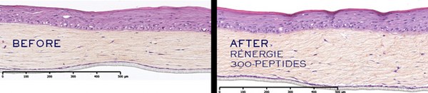 Kem dưỡng 300-Peptide Rénergie của Lancôme đã được chứng minh hiệu quả trong một thử nghiệm đánh giá tái tạo da với hai nhóm phụ nữ khác nhau. Kết quả cho thấy, nhóm sử dụng sản phẩm có quá trình tái tạo da nhanh hơn và tương đương với nhóm phụ nữ trẻ hơn. Nghiên cứu toàn cầu cũng đã chứng minh hiệu quả tức thì và lâu dài của sản phẩm, bao gồm giảm nếp nhăn, làm sáng da, và tăng độ săn chắc của vùng mặt và cổ. Ngoài ra, kem còn cung cấp độ ẩm tức thì và duy trì độ ẩm lâu dài trên da.