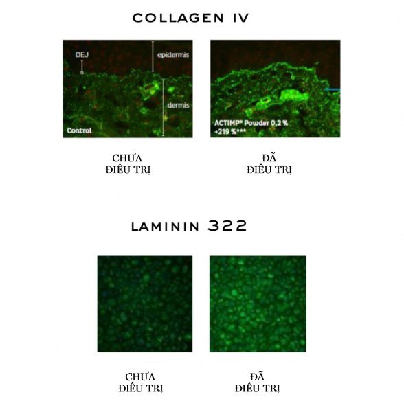 2. Lớp liên kết biểu bì thân bì: Peptide giúp thúc đẩy tăng sinh Laminin 332 và Collagen IV.