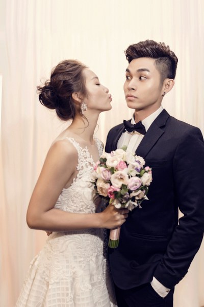 Ít ai biết rằng, để có những hình ảnh ngọt ngào như ướp mật trong bộ ảnh cưới có cả cổ trang, có hiện đại, có ảnh cưới dân tộc và cũng có ảnh cưới truyền thống là những khoảnh khắc đùa nghịch hết sức vui nhộn trong hậu trường của cặp đôi Khả Ngân – Jun Phạm.