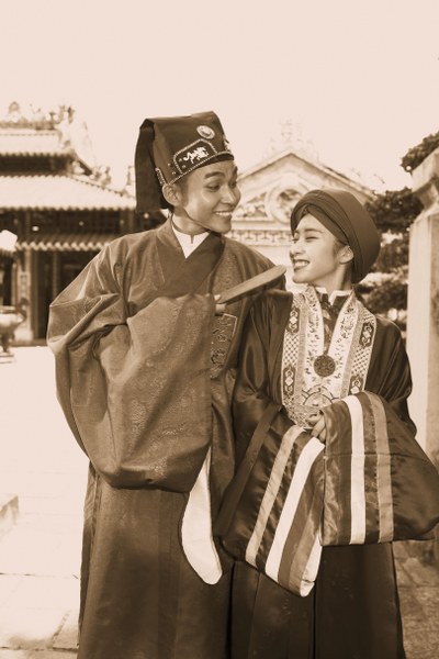 Bộ lễ phục cung đình vương triều Nguyễn – "mặc vào một cái, thần thái lên ngay" nhận được nhiều sự chú ý nhất bởi nó được đầu tư công phu, mang lại cảm giác uy nghi khiến hai diễn viên trẻ lột xác thành ông hoàng, bà chúa đầy quyền lực. Mọi chi tiết trên trang phục đã được phục dựng vô cùng tỉ mỉ, cầu kì.
