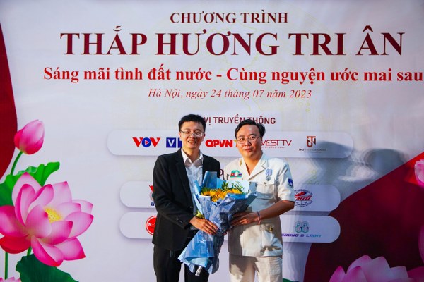 Tiếp nhận lời dăn dạy quý báu của Trung tướng Trung tướng Hoàng Khánh Hưng – Chủ tịch Hội Hỗ trợ gia đình Liệt sĩ Việt Nam, ông Jack Dũng - Chủ tịch hệ sinh thái Salepro, đồng Trưởng Ban Tổ chức chương trình phát biểu: “Hôm nay, tại nghĩa trang Mai Dịch, Hệ sinh thái Salepro, Hội Hỗ trợ gia đình Liệt sĩ Việt Nam, Trung tâm phát thanh truyền hình Quân đội, các đơn vị đồng hành như Đoàn Thanh niên VTC, Trường Cao đẳng Thương mại và Du lịch Hà Nội, khoa Quốc Tế Pháp Ngữ IFI, và hơn 400 bạn tình nguyện viên đại diện thế hệ trẻ cả nước đã trang trọng tổ chức chương trình ‘Thắp hương tri ân’ – ‘Sáng mãi tình đất nước - Cùng nguyện ước mai sau’ với 3 nhiệm vụ lớn: Thứ nhất là tri ân công lao của các Anh hùng -Liệt sĩ bằng việc lau dọn tôn tạo mộ phần, thắp hương nến tri ân. Đến 19h tối ngày 23/7 thì toàn bộ mộ phần các anh linh đã được các tình nguyện viên lau dọn sạch sẽ. Thứ 2 là thăm hỏi tặng quà cho các Mẹ Việt Nam Anh hùng, các thương bệnh binh, thân nhân Liệt sĩ và người có công với cách mạng. Chương trình “Thắp hương tri ân 2023” vinh dự mời được 5 Mẹ Việt Nam Anh hùng, 25 thân nhân Liệt sĩ là sự đồng lòng nhất trí của Hội Hỗ trợ gia đình Liệt sĩ Việt Nam đại diện là Trung tướng Hoàng Khánh Hưng, và một chương trình nghệ thuật kết nối tâm linh sâu sắc là cơ sự biên đạo của Đại tá Phạm Văn Tú, Phó Giám đốc Trung tâm truyền hình Quân đội. Ban Tổ chức rất nỗ lực mời được 50 bác thương bệnh binh phường Phú Thượng và phường Mỹ Đình cùng về hiện diện tại sân khấu hôm nay. Cuối cùng là Giáo dục truyền thống các mạng, tinh thần yêu nước nồng nàn của thế hệ cha anh, truyền thống đền ơn đáp nghĩa đến thế hệ trẻ thông qua hành trình tri ân xuyên suốt tháng 7 lan toả chương trình đến các thế hệ trẻ cả nước”.
