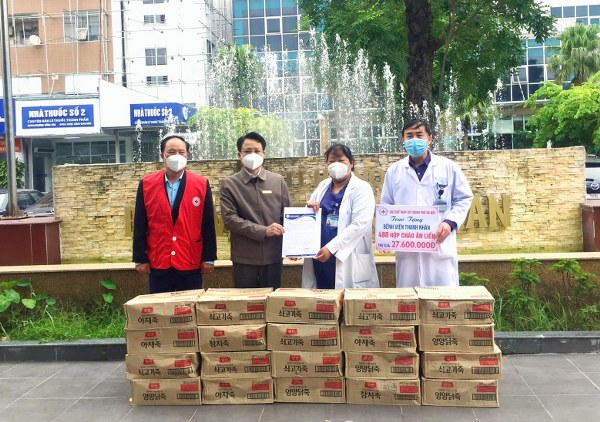 Theo đó, các phần quà là sản phẩm cháo ăn liền đóng hộp Hàn Quốc chất lượng cao, an toàn và giàu dinh dưỡng đã được trao tặng cho 3 bệnh viện tại Hà Nội bao gồm Bệnh viện Đa khoa Thanh Nhàn, Bệnh viện Đa khoa Hà Đông và Bệnh viện Đa khoa Đống Đa. Đây đều là những bệnh viện đang tổ chức cách ly và điều trị cho bệnh nhân Covid-19.