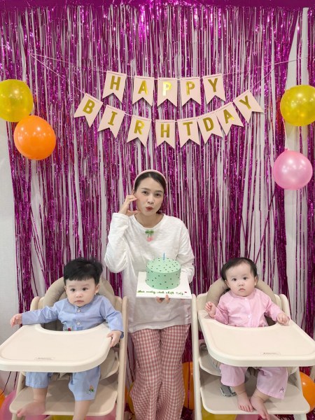 Sam tổ chức sinh nhật một tuổi cho hai bé hồi đầu tháng 3. "Tôi hạnh phúc khi chứng kiến khoảnh khắc con lớn lên từng ngày. Ước mong của gia đình là bé lớn lên khỏe mạnh, có tuổi thơ bình yên", diễn viên nói.