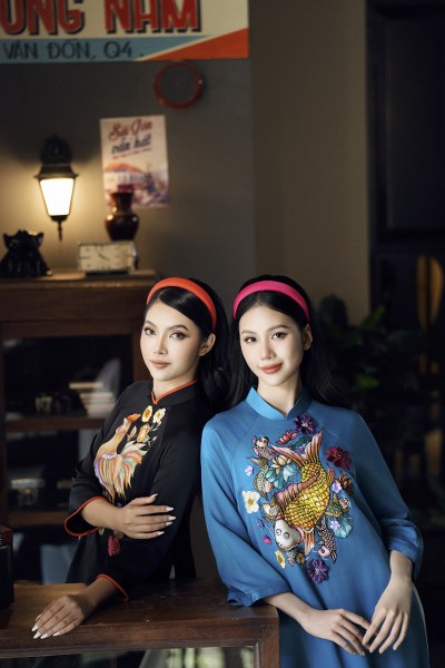 Lấy cảm hứng từ tranh Đông Hồ truyền thống, các họa tiết trên áo được vẽ thủ công trực tiếp lên nền vải, kết hợp với kỹ thuật thêu tay tinh xảo. Những bức tranh quen thuộc như "Vinh hoa", "Phú quý", "Gà trống hoa hồng", "Chăn trâu thổi sáo"... được biến tấu độc đáo.