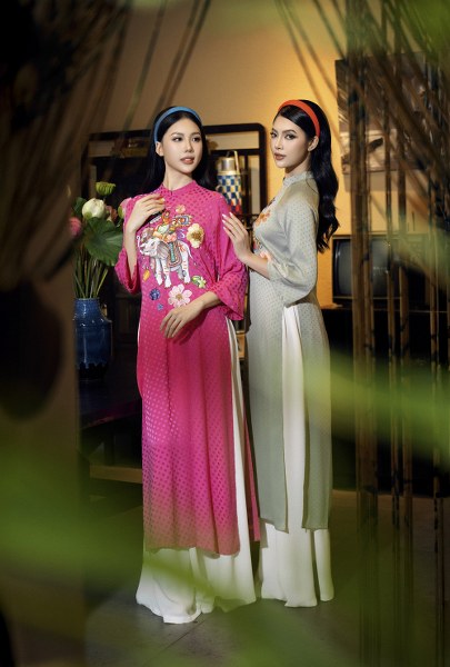 Nhà thiết kế Võ Việt Chung ra mắt BST áo dài "Bức tranh mùa xuân" với 10 thiết kế độc đáo lấy cảm hứng từ tranh Đông Hồ được trình diễn bởi hai nàng hậu Thu Uyên và Bùi Quỳnh Hoa.