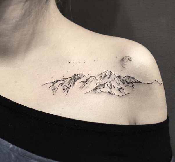 Đẹp như một bức tranh thủy mặc trên bờ vai. Chủ nhân của mẫu tattoo mini này chắc hẳn ngoài vẻ đẹp cá tính, là ẩn dấu một tâm hồn sâu lắng…