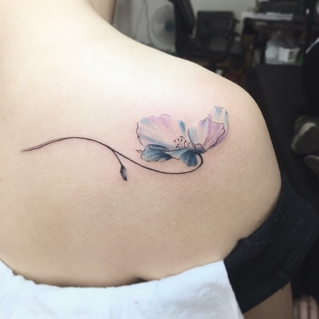12. Mẫu hình xăm hình hoa màu xanh tím