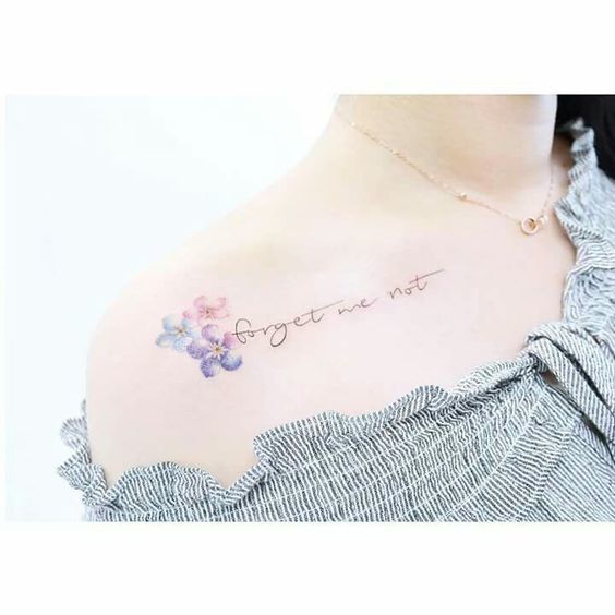 14. Hình xăm nhỏ xinh với những bông hoa và lời nhắn nhủ "Forget me not"