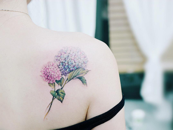 9. Mẫu tatto minh hình hai bông hoa cẩm tú cầu