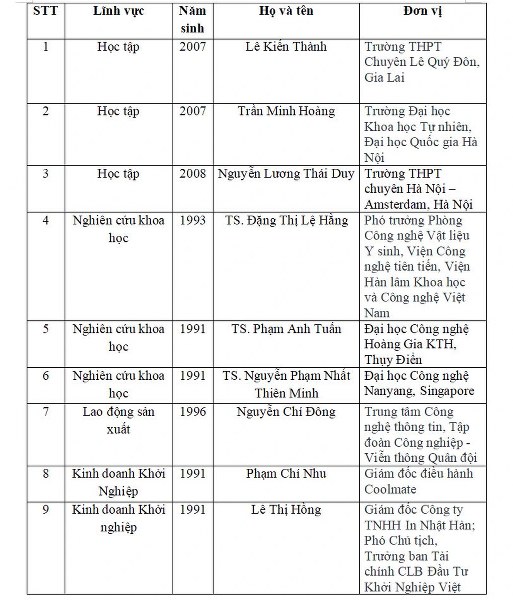 Cụ thể, danh sách 19 đề cử Gương mặt trẻ Việt Nam tiêu biểu năm 2025 gồm: