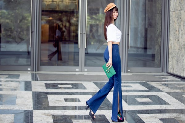 Cô khoe chiều cao lý tưởng không thua kém các siêu mẫu nhờ bộ trang phục có chi tiết ống quần độc đáo