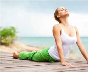 – Sau đó bạn hít sâu và ngã lưng về phía sau, ưỡn ngực lên và ép vai xuống, mặt hướng lên trời, giữ yên tư thế trong vong 5 – 10 giây.
