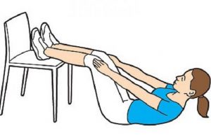 – Nằm ra sàn, đặt hai gót chân lên ghế, chân duỗi thẳng.